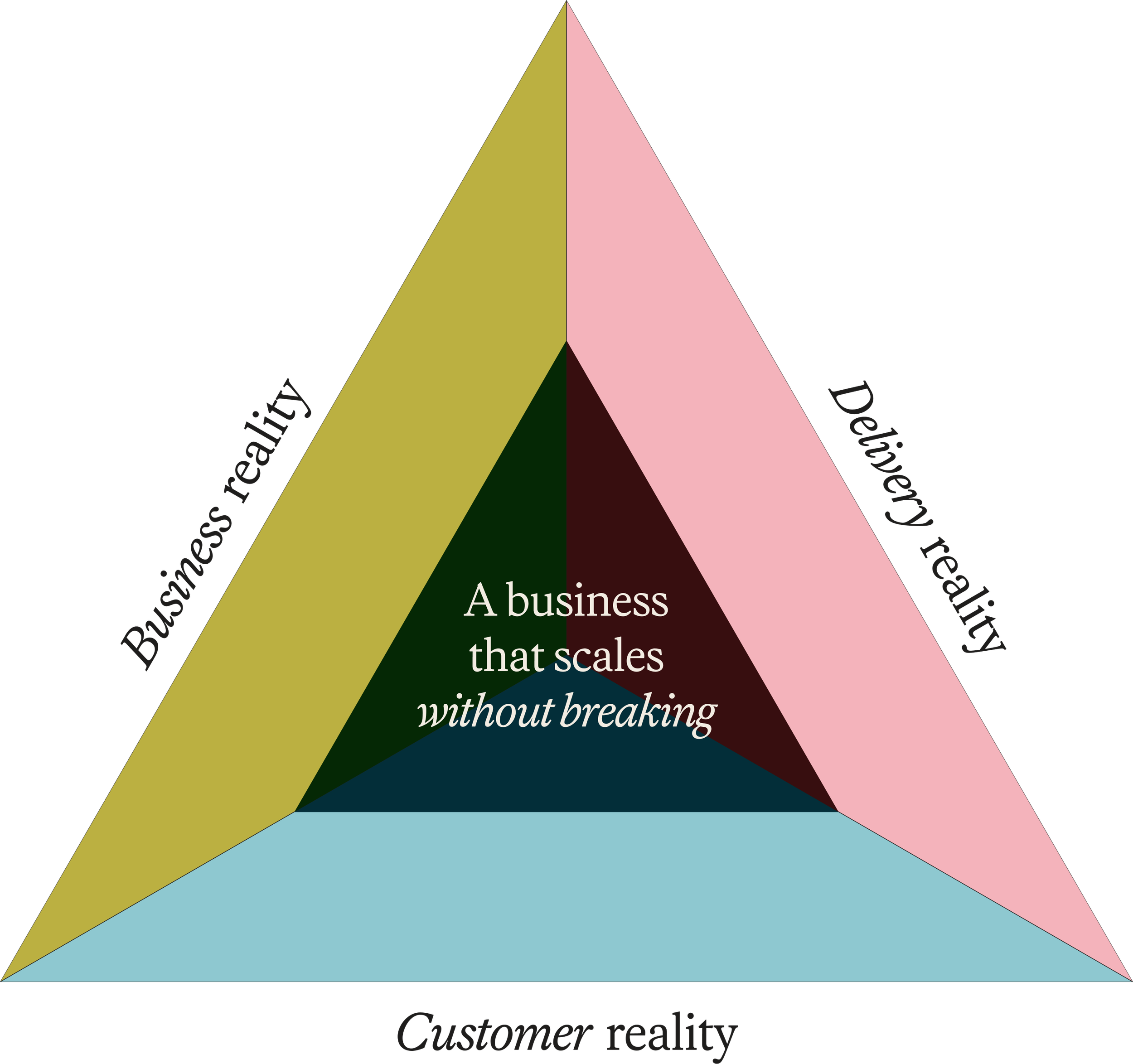 There's a reason I think about this in terms of three forces — Customer Reality, Delivery Reality, Business Reality — what I call the Operator Triangle. The operators I respect most are already running this diagnostic in their heads every day. They're just doing it without the language, without the data, and often without enough distance from the chaos to act on what they already know.